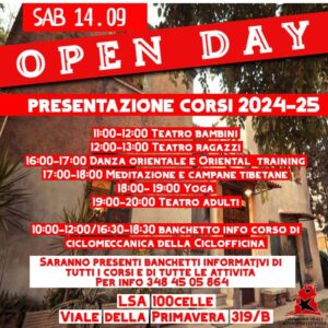 Per tutto il giorno saranno presenti banchetti informativi delle attivita’ e di tutti corsi in presentazione e anche quelli di Inglese, Musica per principianti, Ciclomeccanica