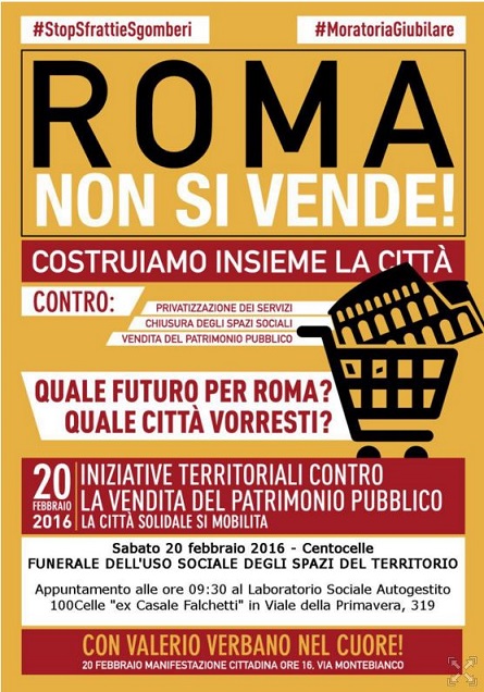 Quale futuro per Roma? Quale e’ la Roma che vorresti? 20 Febbraio iniziative territoriali “Roma non si Vende – Costruiamo insieme la citta’