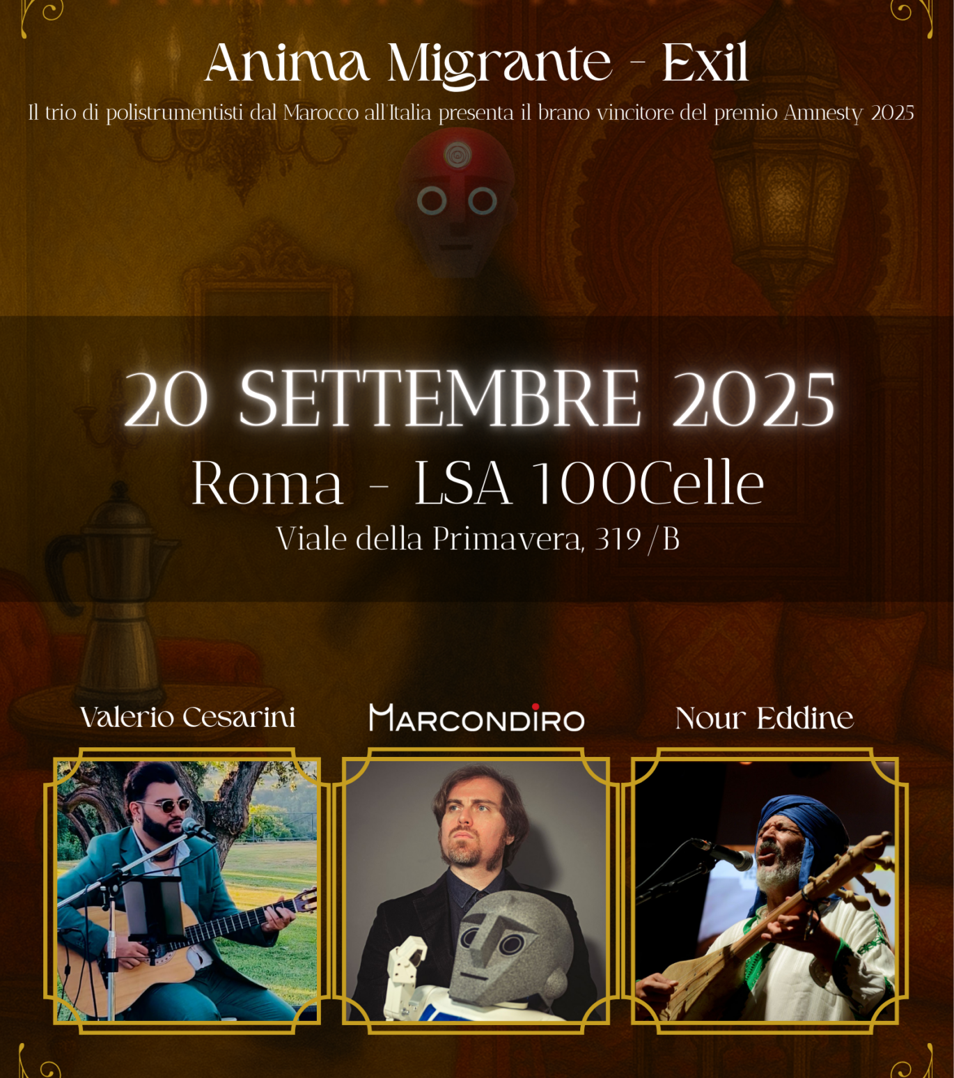 Il concept del concerto “Anime Migranti” rappresenta l’ ideale abbraccio tra oriente ed occidente, di popoli e culture distanti, ma molto vicini e complanari.